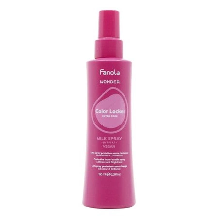 Fanola Wonder Color Locker Milk Spray to lekka, bezspłukiwana mgiełka mleczna stworzona z myślą o włosach farbowanych. Pomaga zatrzymać pigment wewnątrz włosa, dzięki czemu kolor pozostaje intensywny i pełen blasku na dłużej.