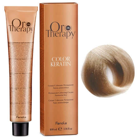 - COLOR KERATIN ORO PURO - innowacyjny system trwałej koloryzacji bez amoniaku. Wzbogacony w Keratynę, Gold oraz Olejek Arganowy.