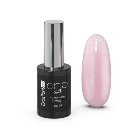 EXCELLENT PRO ONE COAT BASE+ FIBER 04 - baza w naturalnym, beżowo-różowym kolorze, przypominającym kolor płytki paznokciowej oraz z dodatkiem włókien poliamidowych, wapnia i witamin. Niezwykle mocna a jednocześnie elastyczna baza, dzięki której można zapomnieć o słabych i wyginających się paznokciach przy każdej czynności.