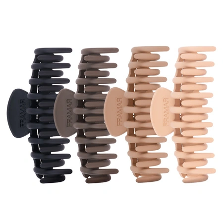 Minimalistyczny styl, wygodne upięcia i pewne utrzymanie włosów przez cały dzień. Duże klamry do włosów Framar w odcieniach nude łączą modną estetykę inspirowaną trendami lat 90. z funkcjonalnością potrzebną w codziennej stylizacji i pracy salonowej.