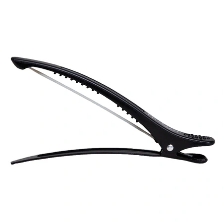 W zestawie znajdują się cztery klipsy w klasycznym, czarnym kolorze, który doskonale wpisuje się w estetykę profesjonalnego stanowiska fryzjerskiego.