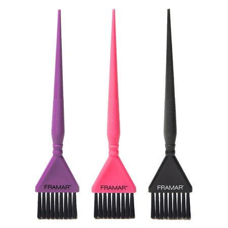 Precyzja, kontrola i swoboda tworzenia koloru. Zestaw trzech klasycznych pędzli do koloryzacji Framar to niezawodne narzędzie w pracy stylisty, które pozwala dopracować każdy detal koloryzacji — od subtelnych refleksów po perfekcyjne blendowanie przejść.